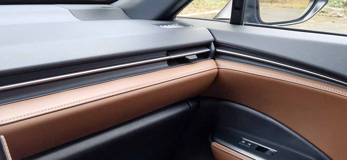 Das puristische Design der Instrumententafel mit breitem Head-up-Display und 12,3-Zoll-LCD-Bildschirm unterstreicht das Gefühl von Geräumigkeit.