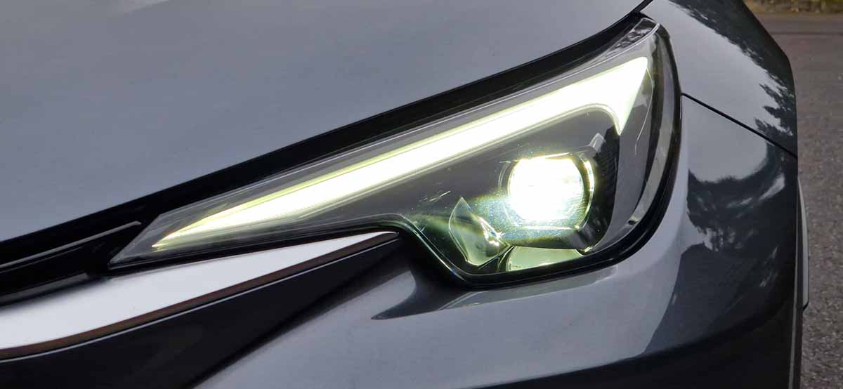 Die tief nach unten gezogene Motorhaube offeriert Sportivität und bietet dem Fahrer eine optimale Sicht, während die markanten LED-Scheinwerfer Entschlossenheit ausstrahlen – ein Frontdesign, das sichtbar in der Tradition des „Resolute Look“ steht. Die charakteristische L-förmige Lichtleiste, die sich über die gesamte Heckbreite erstreckt, unterstreicht die Fahrzeugform.
