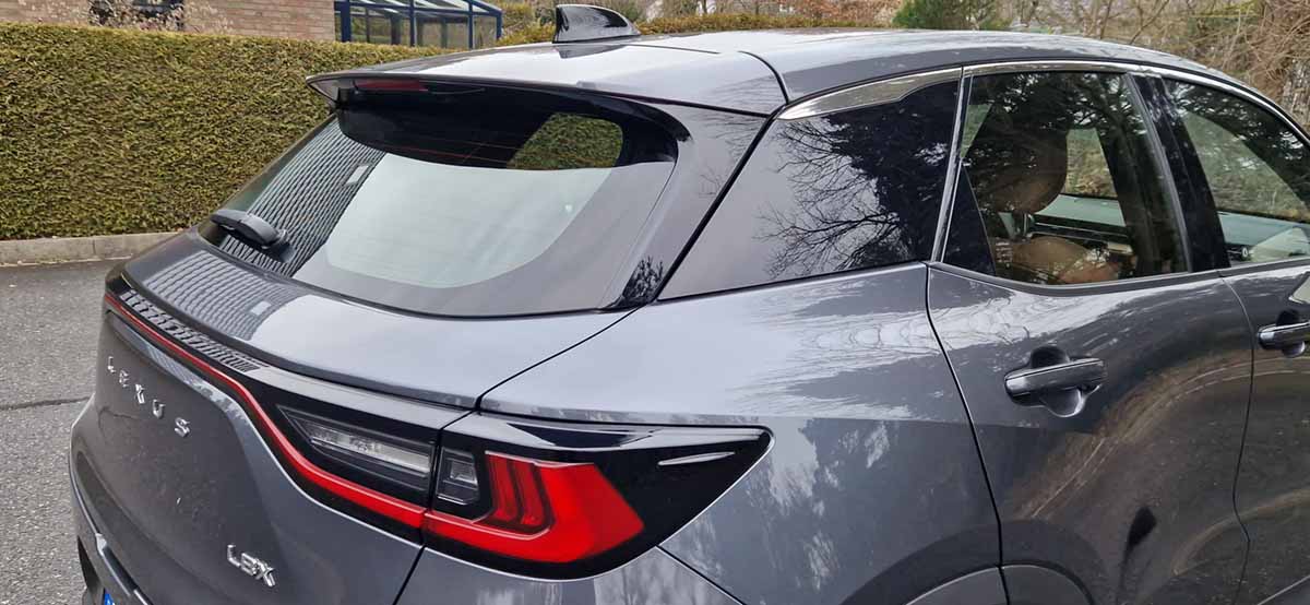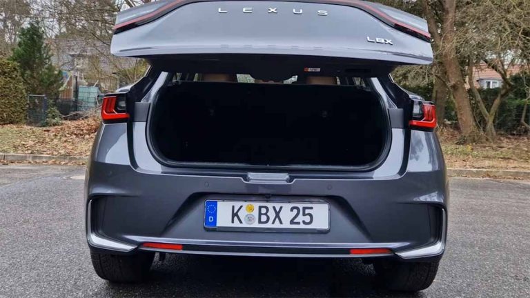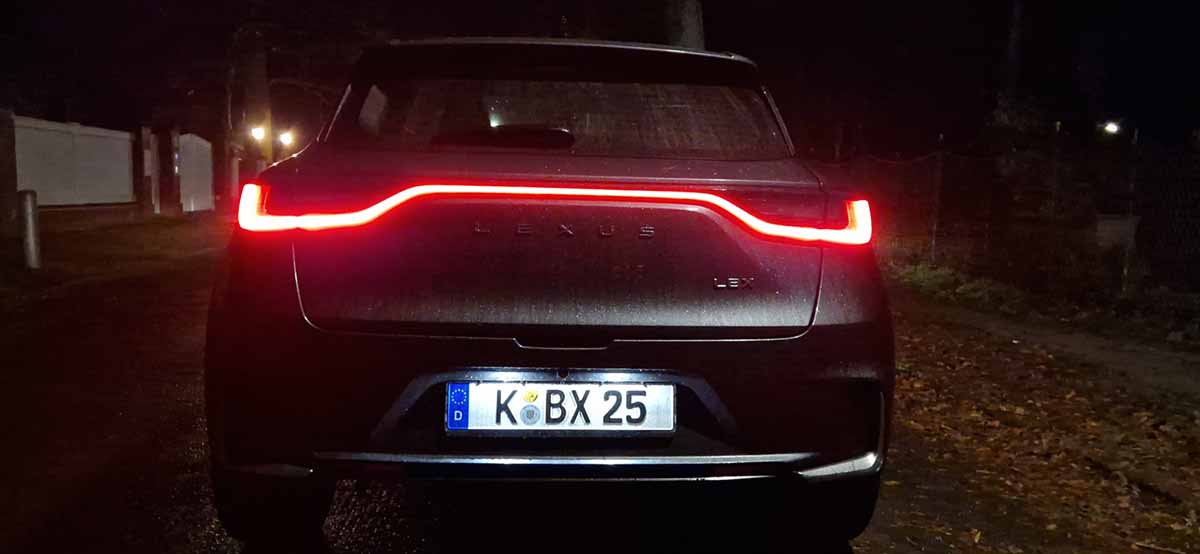 Durch seine kompakten Außenmaße begeistert der LBX mit einem muskulösen und kraftvollen Statement. Die schwarzen Hecksäulen verleihen ihm ein schlankes und aerodynamisches Profil und verstärken die Dynamik. Zusätzlich wurden die vorderen Säulen nach hinten versetzt, sodass der Innenraum kompakter und die Motorhaube länger und eleganter wirkt. Das Nummernschild wurde in den Stoßfänger integriert, sodass der Lexus Schriftzug auf der klar gestalteten Fläche der Heckklappe besser zur Geltung kommt., während die breitere Spur seine Präsenz betont.